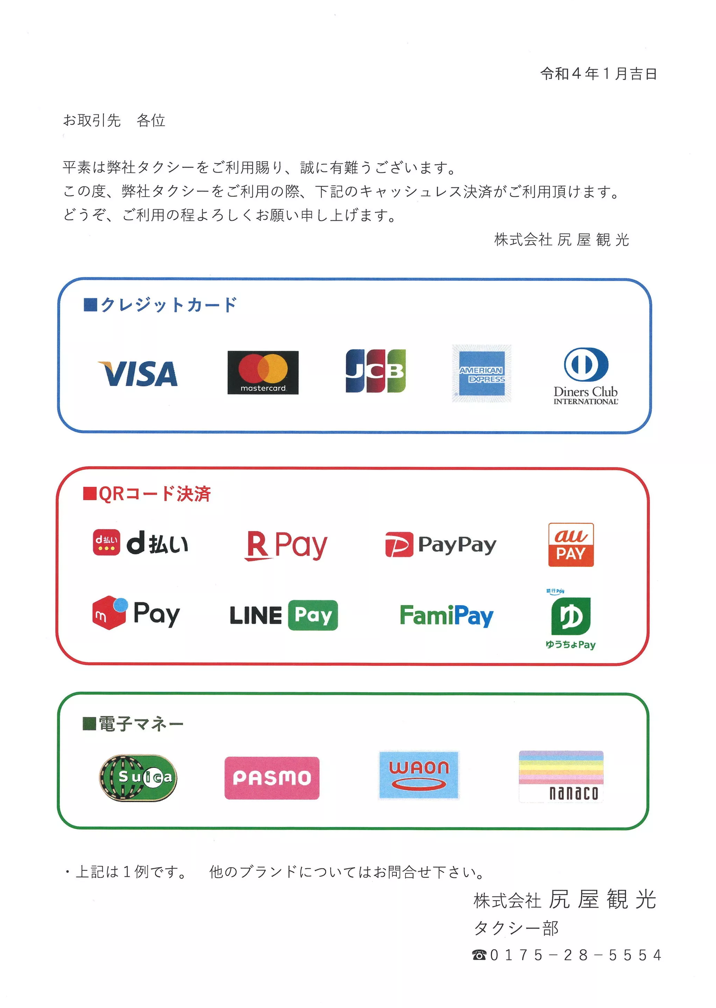 | 令和4年1月吉日 | キャッシュレス決済がご利用いただけます。 |